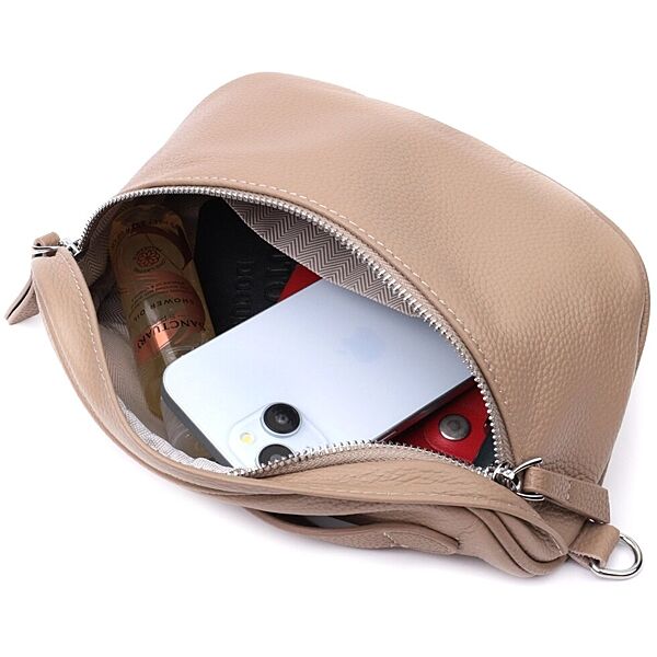 Літня жіноча сумка через плече в класичному кольорі з натуральної шкіри722657 Бежева