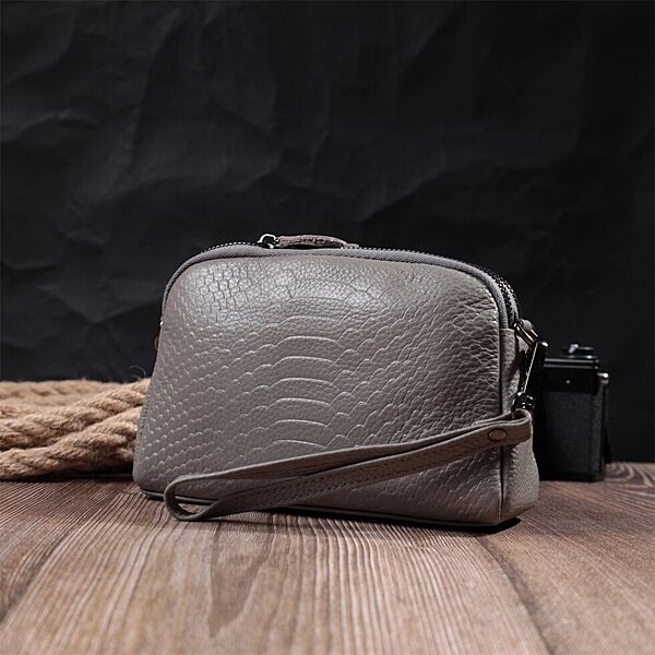 Подробное описание: Невелика жіноча сумка на два відділення з натуральної шкіри722801 Сірий