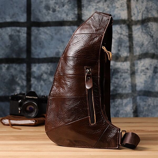 Практична та стильна шкіряна сумка через плече, створена спеціально для чоловіків, які цінують зручність та функціональність. Модель виконана з якісної натуральної шкіри та оснащена продуманою системою зберігання: одне основне відділення із застібкою-блискавкою забезпечує надійне зберігання великих речей, а на лицьовій стороні розташовані три кишені на блискавках для швидкого доступу до дрібних предметів – телефону, ключів, гаманця.