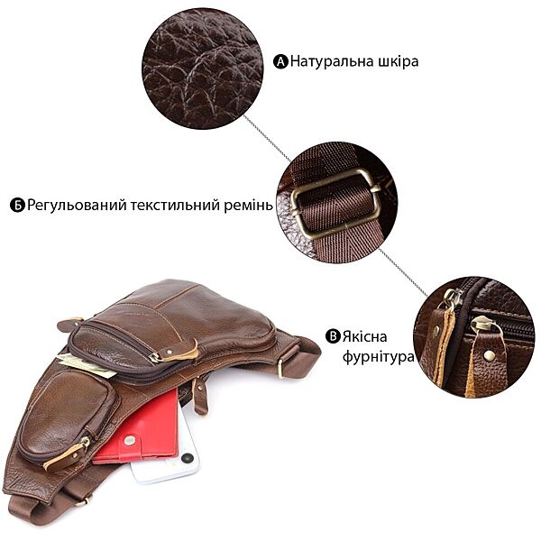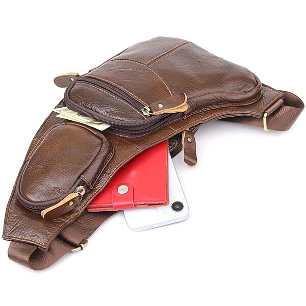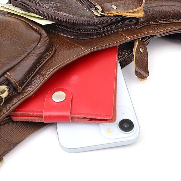 Сумка для чоловіків з великою кількістю кишень із натуральної шкіри722956 Коричневий