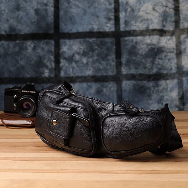 Чоловіча сумка з великою кількістю кишень із натуральної шкіри722961 Чорний