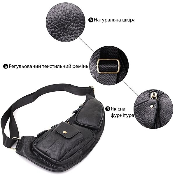 Подробное описание: Чоловіча сумка з великою кількістю кишень із натуральної шкіри722961 Чорний