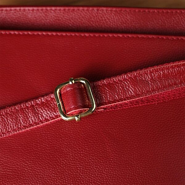 Фурнітура виконана у кольорі жовтого золота, що вигідно контрастує з яскравим червоним кольором шкіри та надає моделі вишуканого та благородного вигляду.