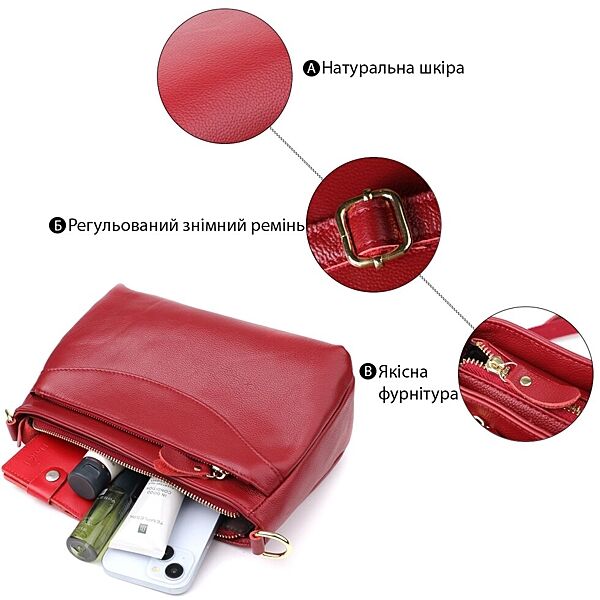 Подробное описание: Сумка жіноча з твердим дном з натуральної шкіри722982 Червоний