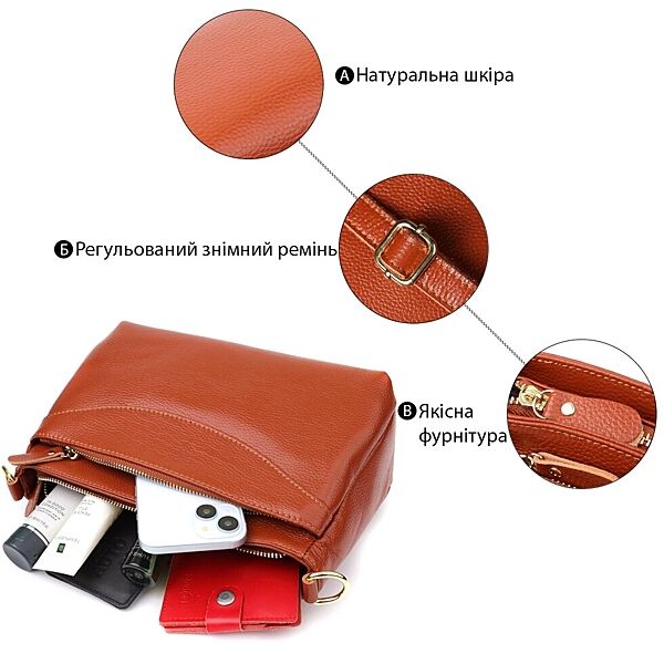 Подробное описание: Жіноча сумка з натуральної шкіри з формостійким дном722983 Коричневий