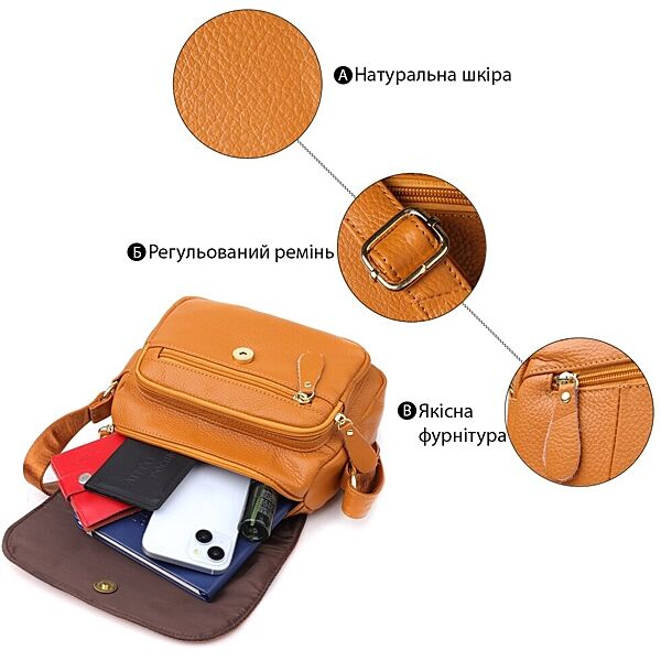 Містка повсякденна сумка з натуральної шкіри для жінок722968 Рудий