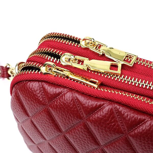 Жіноча шкіряна стьобана сумка на три відділення – вишукана форма класики з нотками сучасної елегантності. Ця модель - ідеальне поєднання стилю та функціональності. Виконана з натуральної шкіри з м´якою стібкою у формі ромбів, сумка виглядає витончено та дорого. Стьобана текстура надає аксесуару виразності та об´єму, роблячи його не просто зручним, а по-справжньому модним акцентом в образі.