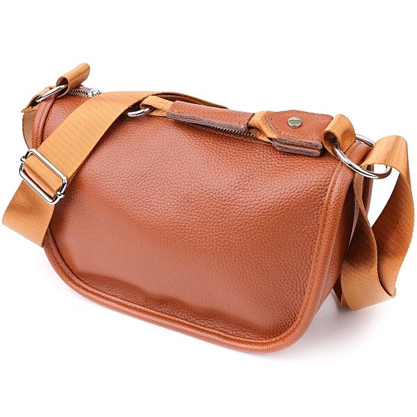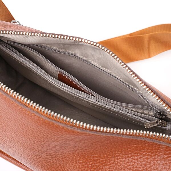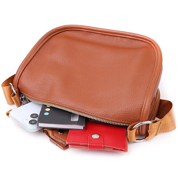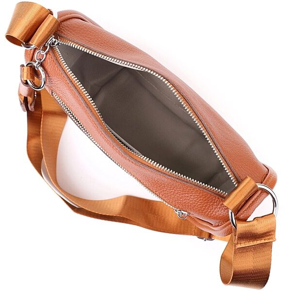 Жіноча шкіряна сумка коричневого кольору виконана з якісної зернистої шкіри і має напівкруглу акуратну форму, що підкреслює елегантність і сучасний стиль. Особливий акцент моделі - декоративний бігунок у вигляді стильного брелка, який додає індивідуальності та вишуканості. Сумка закривається на блискавку, всередині одне основне відділення з двома кишенями на блискавці та двома відкритими кишенями для дрібниць, на тильній стороні розташована зовнішня кишеня на блискавці. Текстильний ремінь не знімний та забезпечує зручне носіння, а фурнітура під срібло гармонійно доповнює теплий відтінок шкіри. Ця сумка стане універсальним аксесуаром для повсякденного використання та особливих випадків, поєднуючи практичність, стиль та увагу до деталей. ОПЛАТА та ДОСТАВКА: накладний платіж (передоплата 200 грн, залишок при отриманні посилки) або повна оплата на картку. Терміни відправлення 1-3 робочих днів.