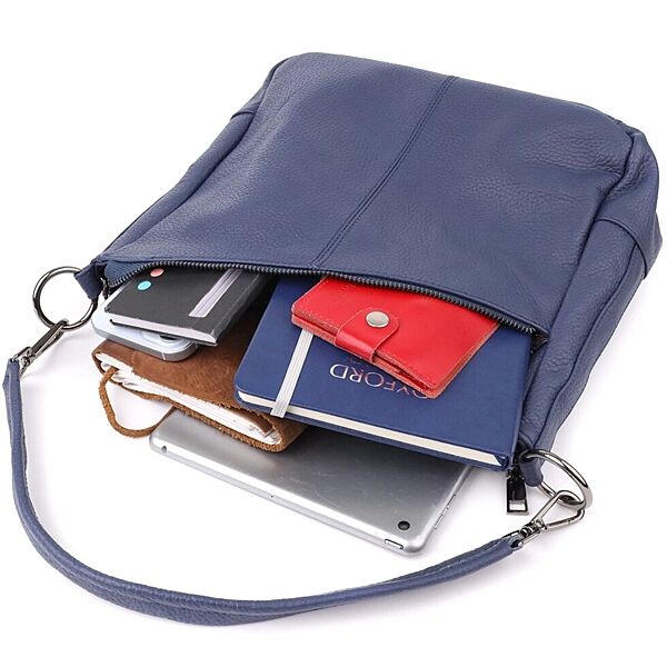 Елегантна та функціональна сумка з натуральної шкіри у насиченому синьому кольорі стане універсальним аксесуаром для будь-якого випадку. Її продумана конструкція та стильний зовнішній вигляд роблять модель ідеальною як для повсякденного носіння, так і для ділових зустрічей.