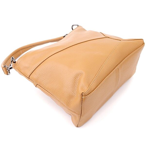 Універсальна сумка з натуральної шкіри у світло-коричневому кольорі – це гармонійне поєднання стильного дизайну, якості та практичності. Теплий відтінок шкіри надає моделі особливої м´якості та елегантності, роблячи її універсальним доповненням як до повсякденних, так і до ділових образів.