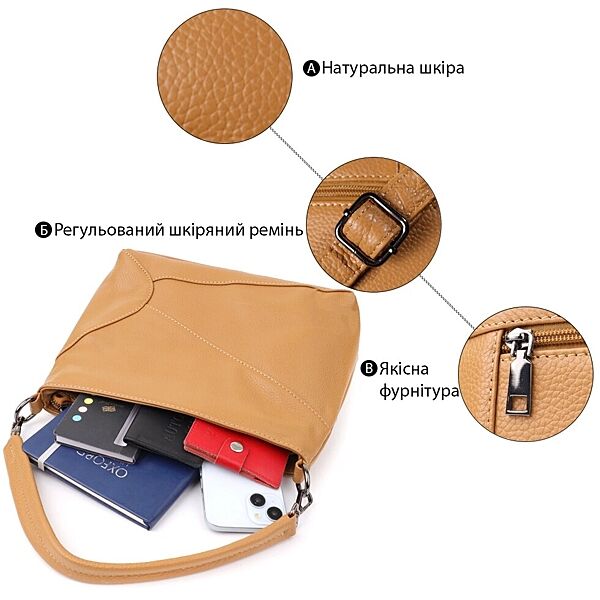 Подробное описание: Жіноча сумка на два відділення з натуральної шкіри723015 Світло-коричневий