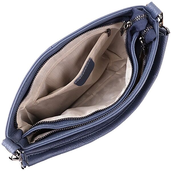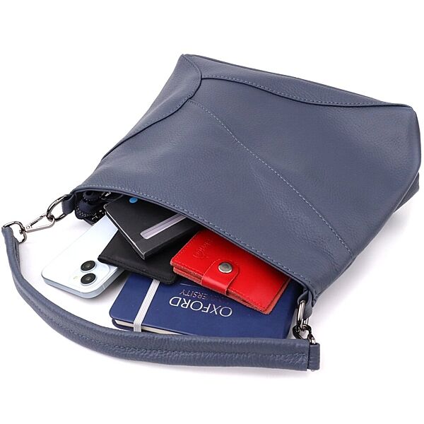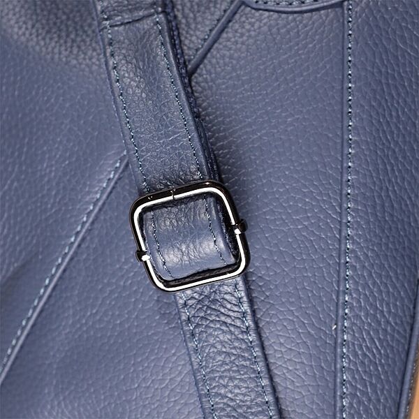 Фурнітура під срібло гармонійно поєднується із насиченим синім кольором шкіри, підкреслюючи стильний характер сумки. Два шкіряні ремінці, що знімаються, дають можливість носити її на плечі, через плече або в руках, легко підлаштовуючись під ваш ритм життя і уподобання.