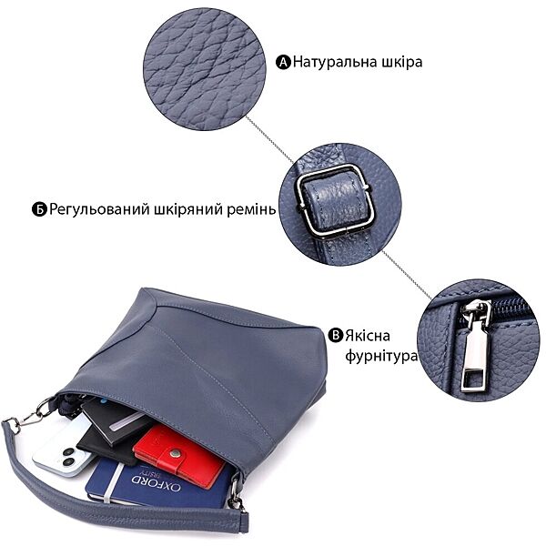 Подробное описание: Жіноча сумка на два відділення з натуральної шкіри723016 Синій