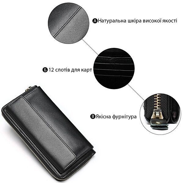 Якісний і м´який чоловічий клатч здатний замінити барсетку. Аксесуар виготовлений з натуральної шкіри. Клатч закривається на блискавку. Якість - фабричний Китай. Виріб прекрасно лежить в руці і не важке. Аксесуар можна носити як в сумці, так і як окремий аксесуар. Модель поєднує в собі функції гаманця і візитниці. Виріб буде знахідкою для тих, хто любить носити з собою багато знижкових карток. У комплекті йде пилозахисний чохол. ОПЛАТА та ДОСТАВКА: накладний платіж (передоплата 200 грн, залишок при отриманні посилки) або повна оплата на картку. Терміни відправлення 1-3 робочих днів.
