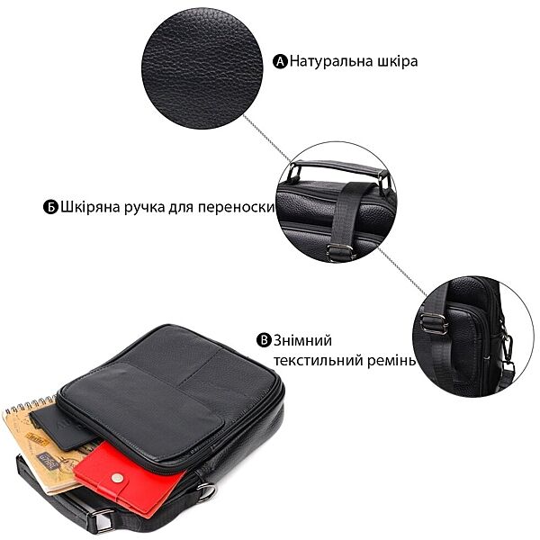 Подробное описание: Практичний чоловічий месенджер із натуральної шкіри721950 Чорний