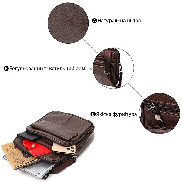 Подробное описание: Вертикальна чоловіча сумка з натуральної шкіри721952 Коричнева