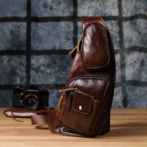 Чоловіча сумка з великою кількістю кишень із натуральної шкіри722962 Коричневий
