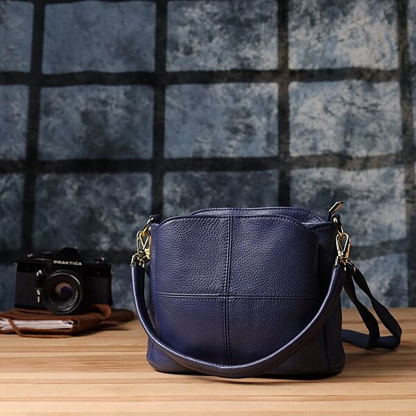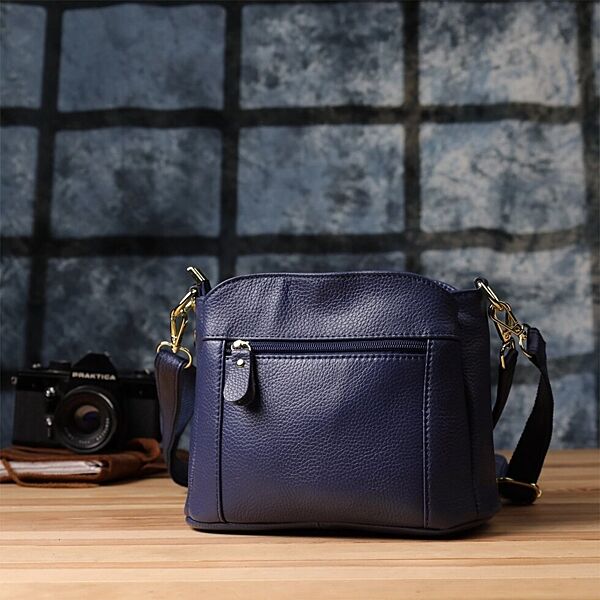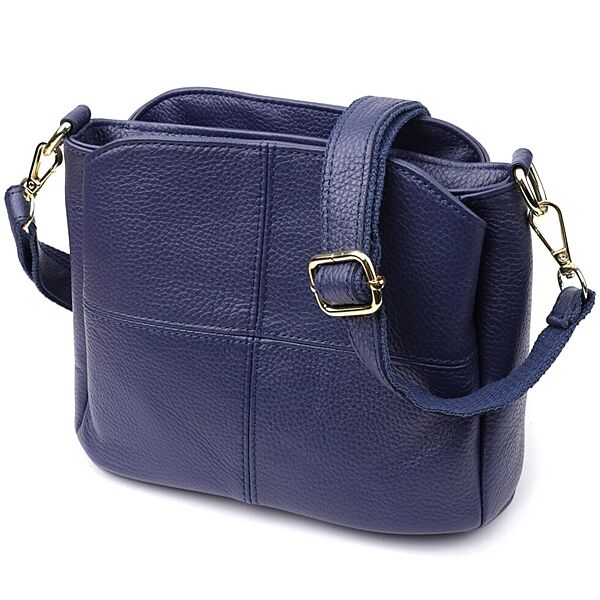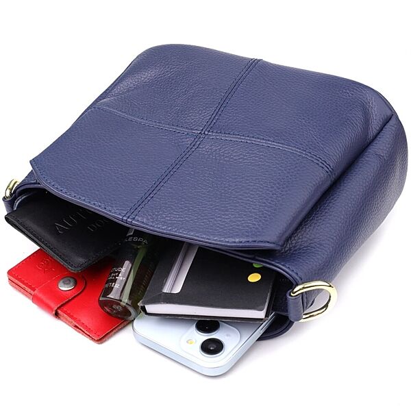 Жіноча сумка з натуральної шкіри з трьома відділеннями722976 Синій