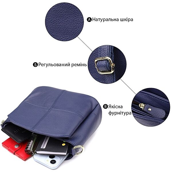 Подробное описание: Жіноча сумка з натуральної шкіри з трьома відділеннями722976 Синій