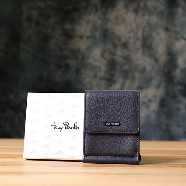 Вертикальний чоловічий затискач із зернистої натуральної шкіри 7208621 3595 navy Синій
