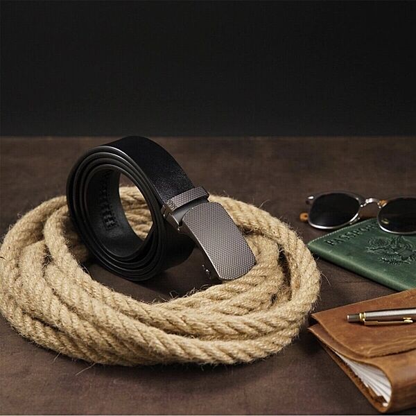 Ремінь чоловічий з зернистою пряжкою автомат720272 Чорний