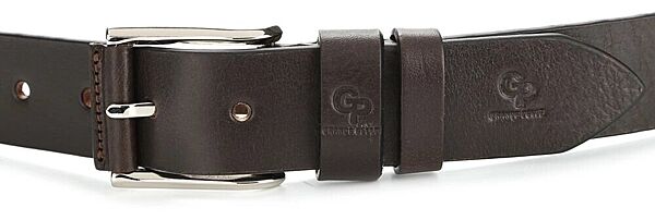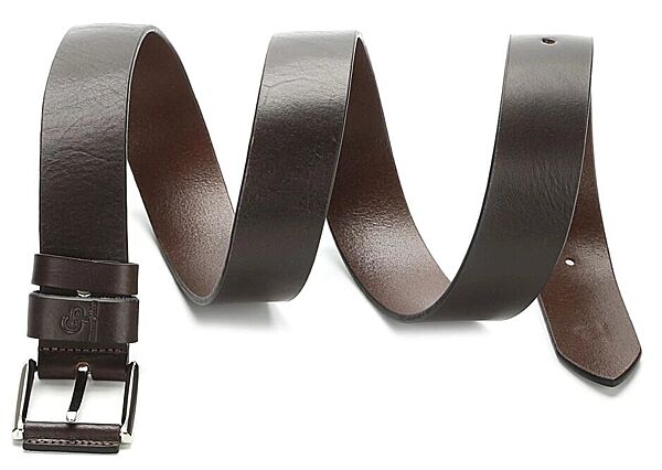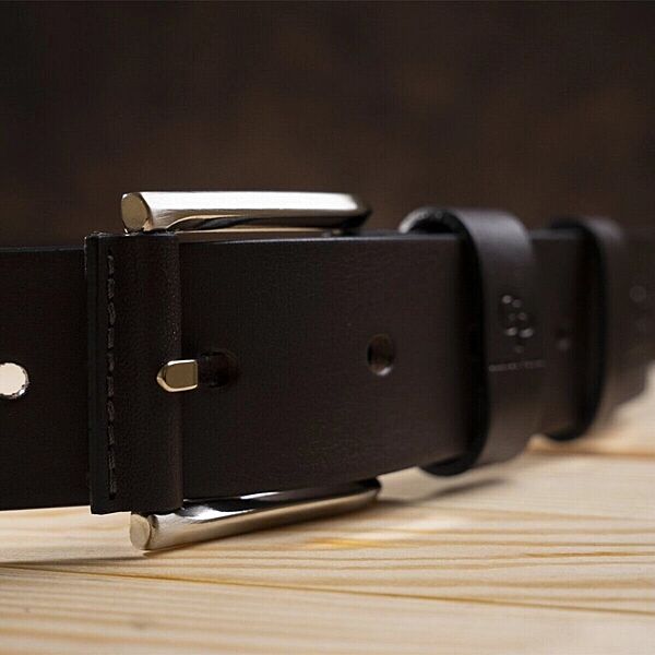 Відмінний шкіряний ремінь з італійської високоякісної шкіри. Аксесуар виконаний в темно-коричневому кольорі. Колір фурнітури срібло. За замовчуванням ремінь поставляється в картонній упаковці, тому він може послужити подарунком чоловікові до будь-якого свята.