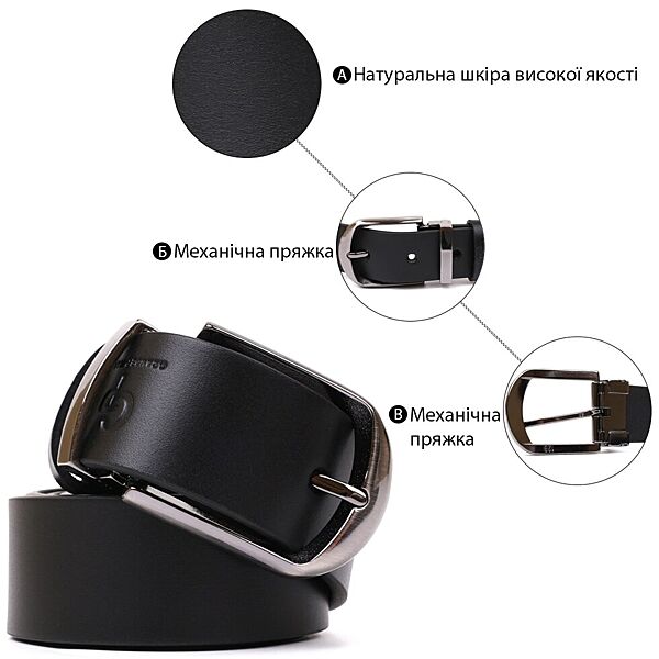 Подробное описание: Ремінь чоловічий 700870 шкіряний Чорний