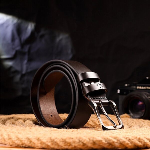 Стильний брючний чоловічий ремінь із натуральної шкіри 721449 Коричневий