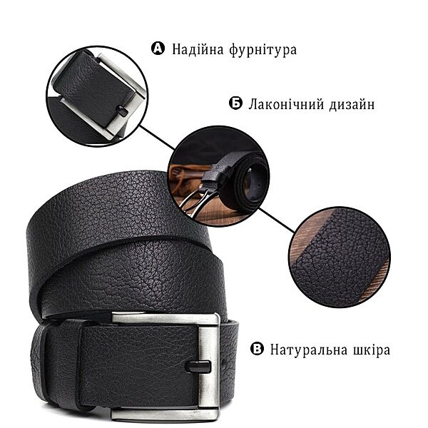 Подробное описание: Чоловічий джинсовий ремінь з механічною пряжкою з натуральної шкіри 722070 Чорний