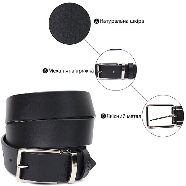 Подробное описание: Практичний брючний ремінь для чоловіків з натуральної шкіри 711677 Чорний