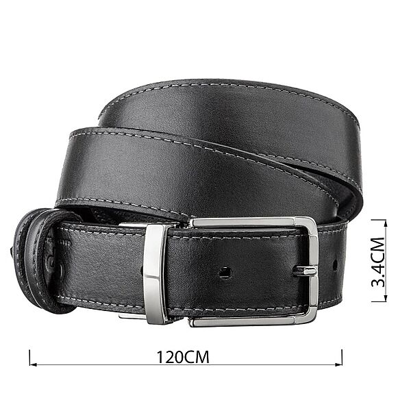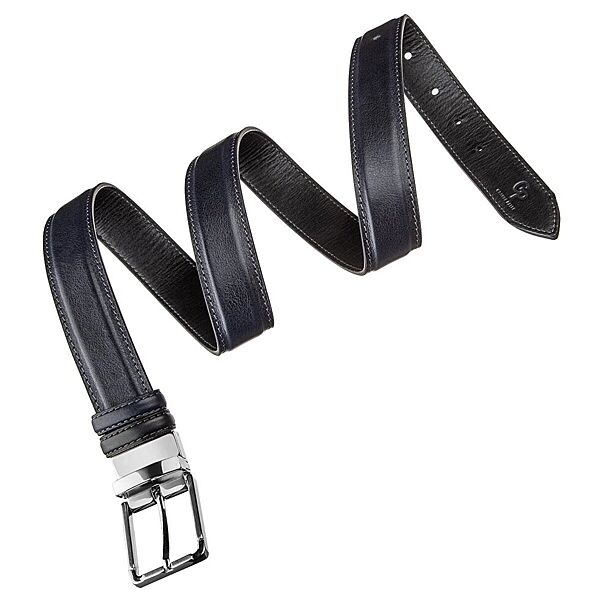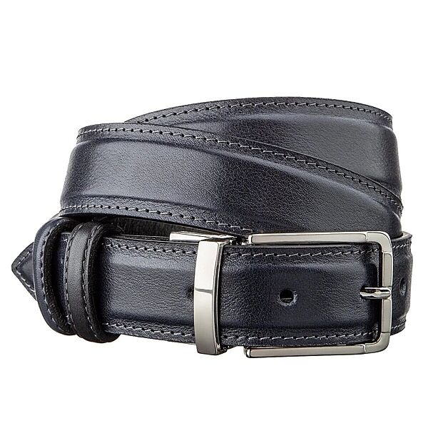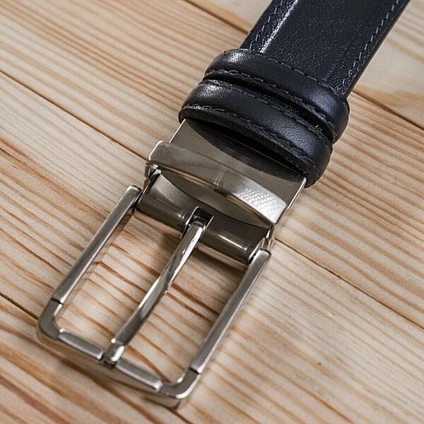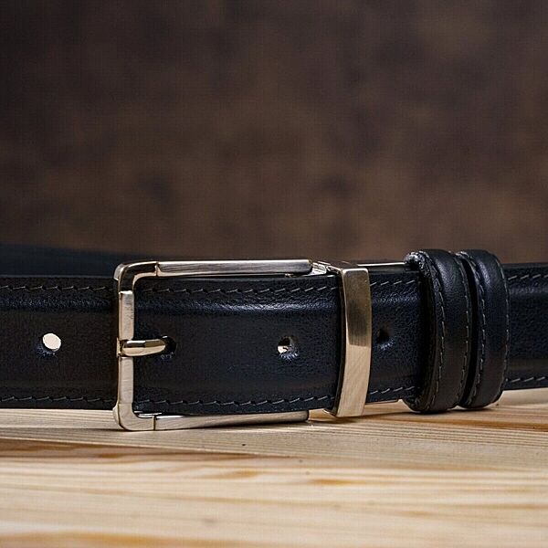 Модний ремінь з цільної італійської шкіри. Унікальною особливістю такого ременя є те, що ви можете носити його будь-якою стороною або чорною, або синьою. Це ремінь з´єднує в собі 2 кольори в одному. Такий аксесуар просто знахідка для тих, хто не хоче купувати 2 ремені різних кольорів. Модель прошита рівним швом по краях ременя. Виробник, використовує виключно імпортну фурнітуру, яка не темніє, не дряпається і не викликає алергії. Такий шкіряний ремінь завжди доповнить гардероб як молодого юнака, так і буде гарним доповненням до образу солідного чоловіка.