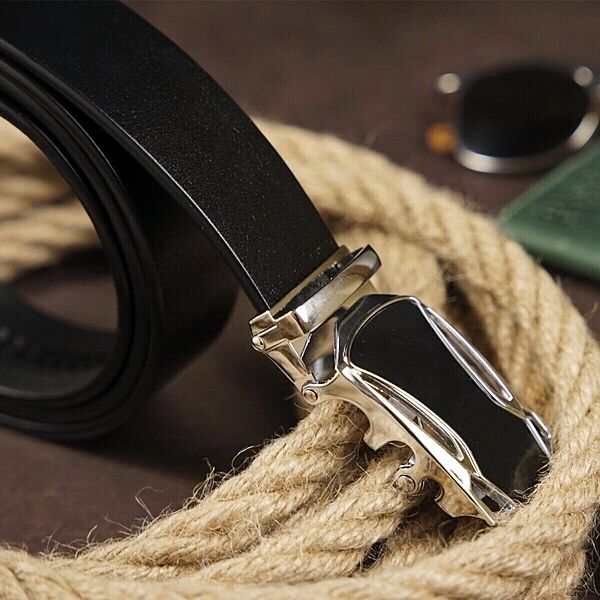 Ремінь чоловічий з пряжкою автомат з чорною вставкою720254 Чорний