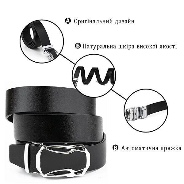 Подробное описание: Ремінь чоловічий з пряжкою автомат з чорною вставкою720254 Чорний
