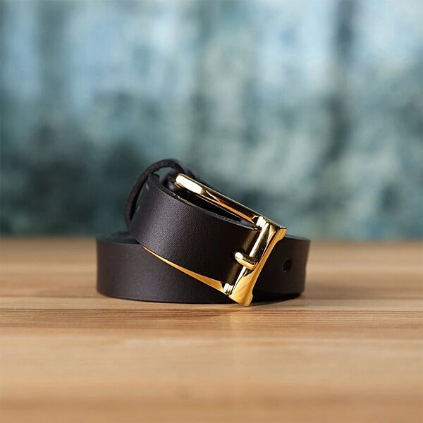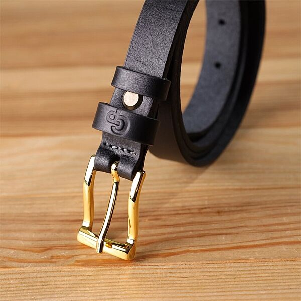 Тонкий шкіряний ремінь для жінок 722947 Чорний