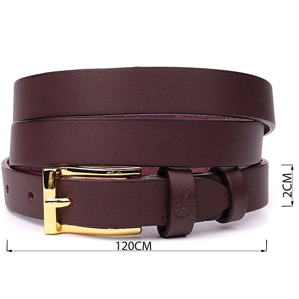 Модний вузький шкіряний ремінь для жінок 722953 Бордовий