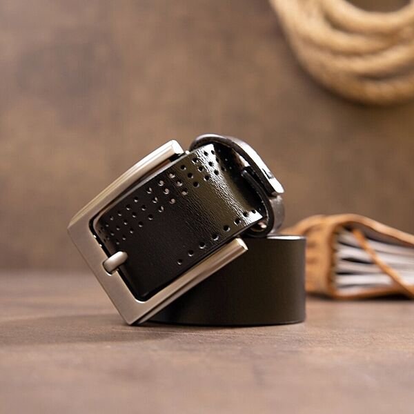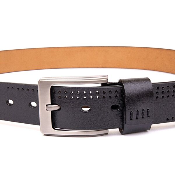 Стильний ремінь в щільній шкірі. Дизайн ременя доповнений дрібними дірками по всій довжині. Аксесуар з класичною масивною пряжкою з щільного металу. Виріб прекрасно підкреслить ваш образ. Підійде під будь-який стиль. Якісний ремінь - запорука правильно зібраного образу і елемент статусу чоловіка. Виробництво - фабричний Китай високої якості.