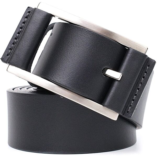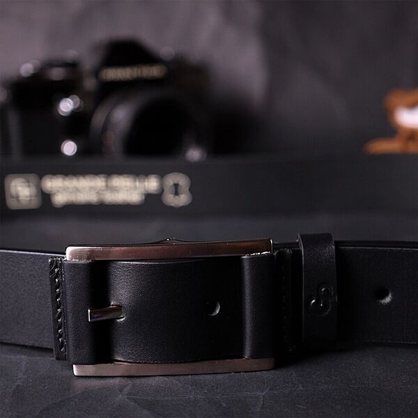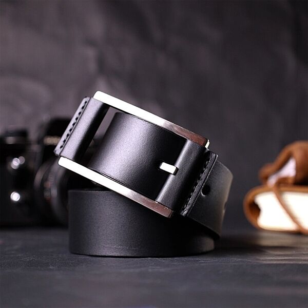 Брючний шкіряний ремінь для чоловіків з квадратною пряжкою 711679 Чорний