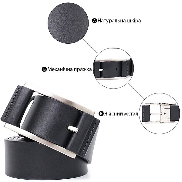 Подробное описание: Брючний шкіряний ремінь для чоловіків з квадратною пряжкою 711679 Чорний