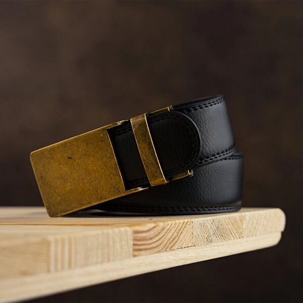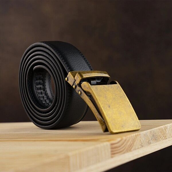 Ремінь чоловічий з латунною прямокутною пряжкою720332 Чорний
