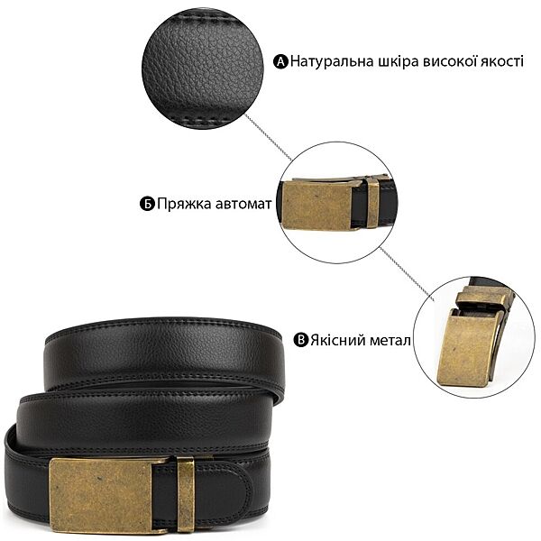 Подробное описание: Ремінь чоловічий з латунною прямокутною пряжкою720332 Чорний