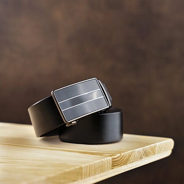 Ремінь чоловічий зі смужками на пряжці720334 Чорний