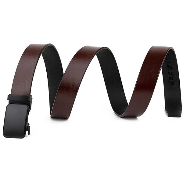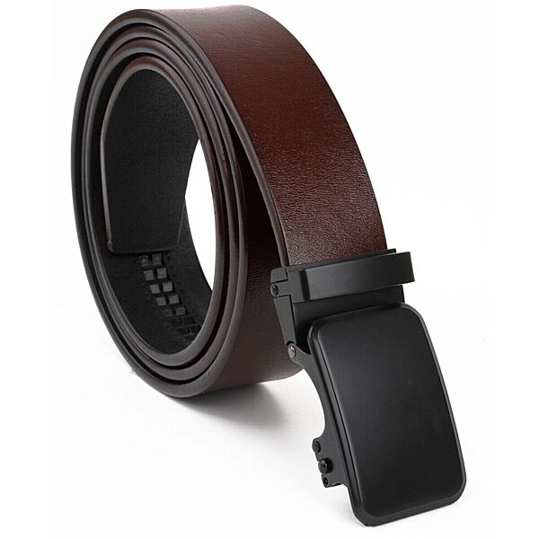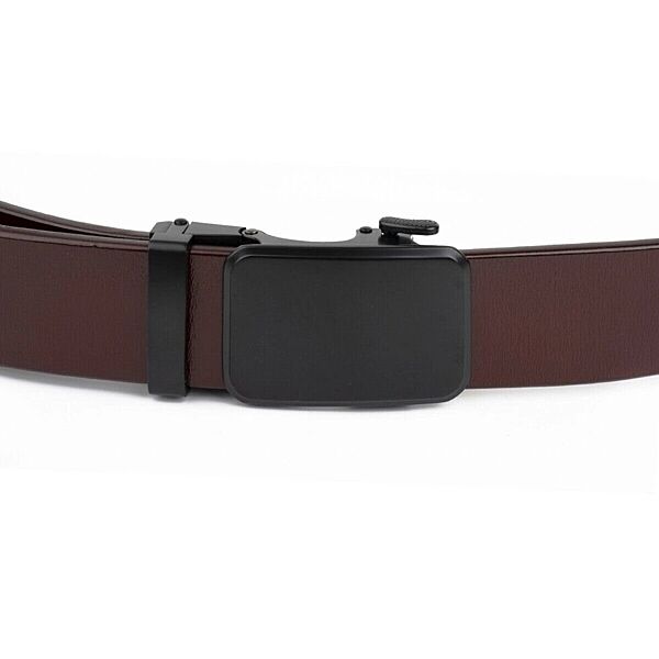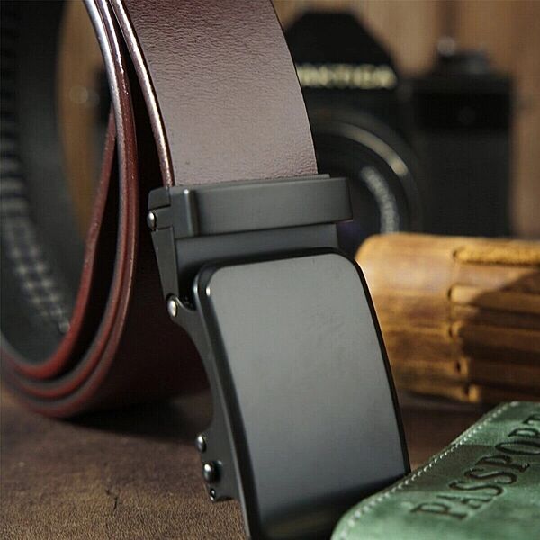 Ремінь чоловічий з чорною пряжкою автомат720271 Коричневий