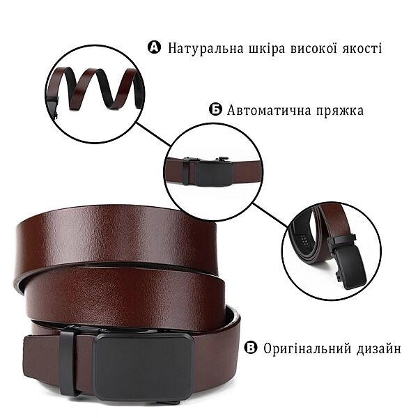 Подробное описание: Ремінь чоловічий з чорною пряжкою автомат720271 Коричневий
