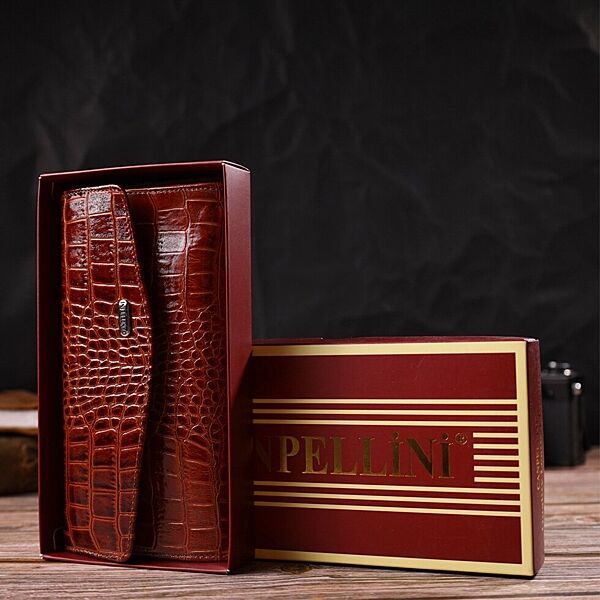 Подробное описание: Жіноче портмоне з лакованої натуральної шкіри з тисненням під крокодила 721704 Коричневе