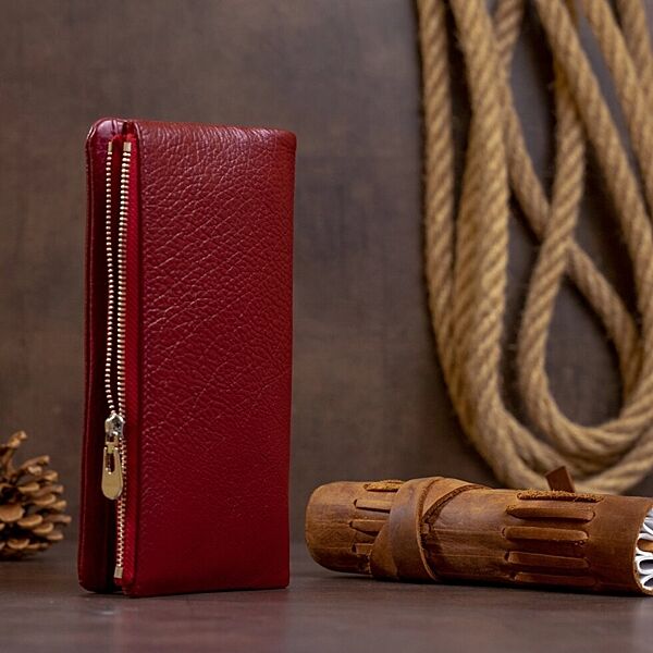 Гаманець вертикального типу з нової колекції. Колір - насичений бордовий. Матеріал виготовлення натуральна 100% шкіра. Усередині аксесуар має 3 кишені для купюр в розгорнутому вигляді, 12 слотів під пластикові картки. Зовні - бокова кишеня на блискавці, в який поміститься мобільний телефон невеликого розміру. Гаманець підкреслить ваше почуття стилю і відмінний смак. Зручно сидить в руці і прослужить вам далеко не один рік. Рекомендуємо вам дану модель в якості подарунка. У комплекті до гаманця йде фірмова коробка. ОПЛАТА та ДОСТАВКА: накладний платіж (передоплата 200 грн, залишок при отриманні посилки) або повна оплата на картку. Терміни відправлення 1-3 робочих днів.