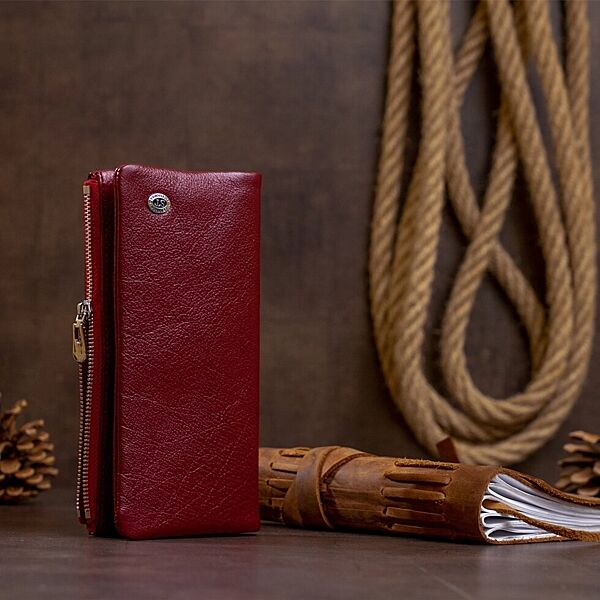 Вертикальний гаманець на кнопці жіночий 719204 Бордовий