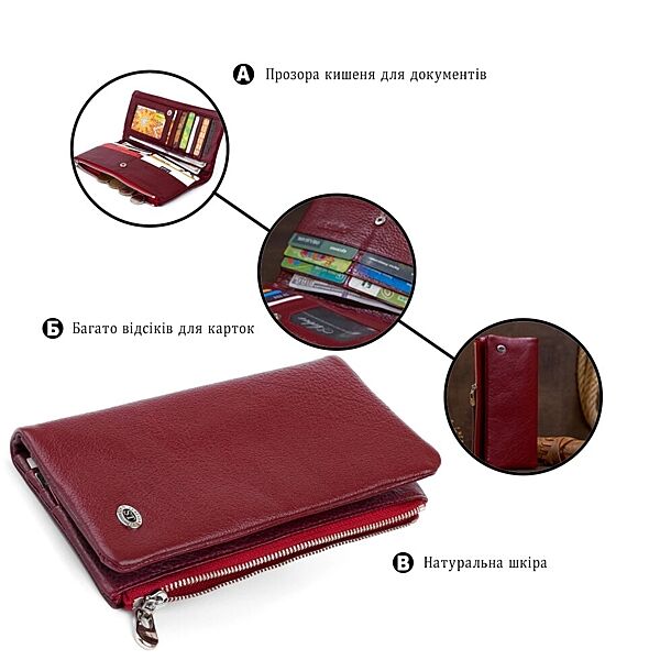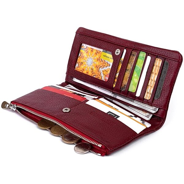 Подробное описание: Вертикальний гаманець на кнопці жіночий 719204 Бордовий