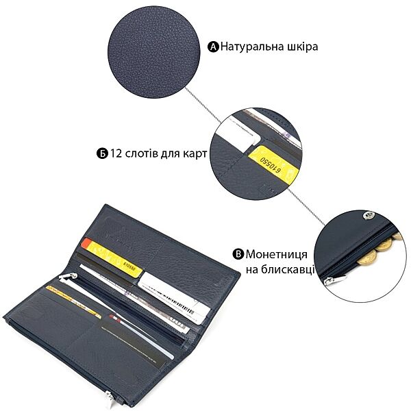Подробное описание: Стильний жіночий шкіряний гаманець 719382 Темно-синій