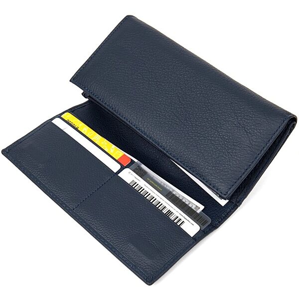 Відмінний жіночий гаманець з натуральної шкіри в спокійному темно-синьому кольорі. Має приємну на дотик фактуру і матове покриття. Має окреме відділення на кнопці спеціально для різних карт, його наповнення можна регулювати. Дана модель обов´язково припаде до смаку навіть найвибагливішим господаркам. ОПЛАТА та ДОСТАВКА: накладний платіж (передоплата 200 грн, залишок при отриманні посилки) або повна оплата на картку. Терміни відправлення 1-3 робочих днів.