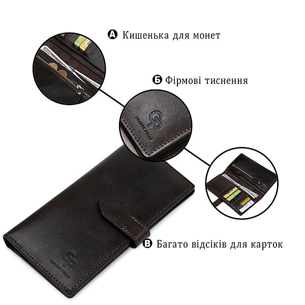 Подробное описание: Шкіряне чоловіче глянсове портмоне 711517 Коричневий